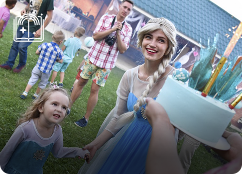 У нас есть собственные костюмы и образы, а также мы сотрудничаем с костюмерными, поэтому можем предложить любого персонажа из мультфильма или программы.
